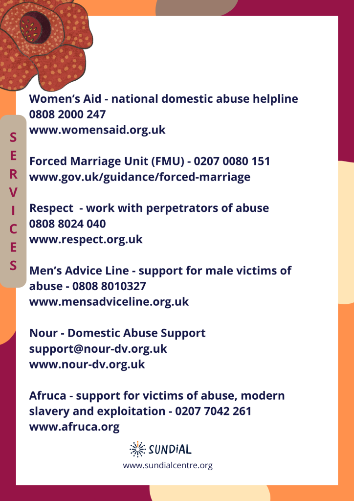 We created and delivered ‘Culture Explorer’ workshops to support families residing at an Oxfordshire Hotel awaiting the outcome of their asylum claims. Our 3-hour workshops covered issues including healthy relationships, culture and migration, family dynamics, harmful practices and raised awareness of support services. We delivered 10 workshops for 95 residents, including young people and children, in multiple languages including Albanian, Punjabi, Arabic, Kurdish-Sorani, English, Spanish, Urdu and Persian, as well as a workshop for staff and volunteers. Our facilitators’ sensitivity and interest in the residents’ cultures scored very highly and many residents reached support they did not know was available. The helpline numbers above were displayed on an information board at the hotel at the end of the project.